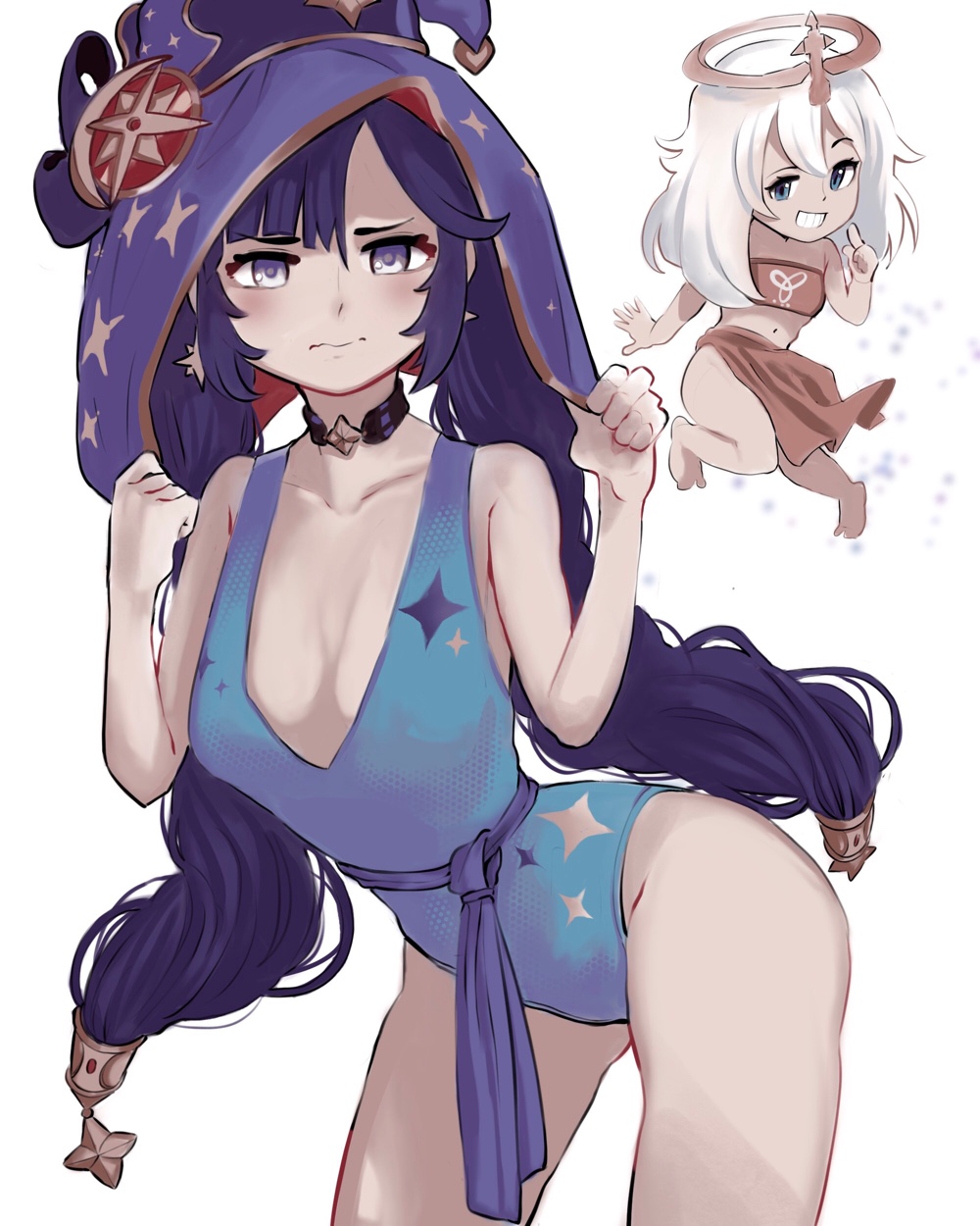 [For one, Chongyun doesn’t exactly possess swimwear, nor did he have the funds to go out and purchase one after arriving so recently. So he arrives in his usual exorcism outfit, which might be a little out of place both for the activities and weather. And unfortunately as the midday heat settles in, Chongyun will most likely be found under one of the beach umbrellas, trying desperately to hide from the heat. He’ll be drinking a cold beverage or nibbling on a slice of watermelon, mostly watching the others playing with water guns and beachballs from his spot. Such a lively time… did people really do such things for fun?]